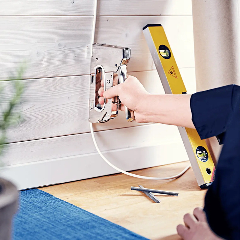 Agrafeuse manuelle RAPID R36 pour câbles Pose rapide de câbles basse tension jusqu’à 6 mm Ø. Réglage de puissance 3 positions + technologie Powercurve™ (–40 % d’effort). Compatible agrafes cavaliers 7/36 (10–14 mm).