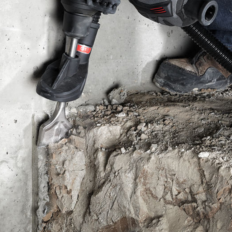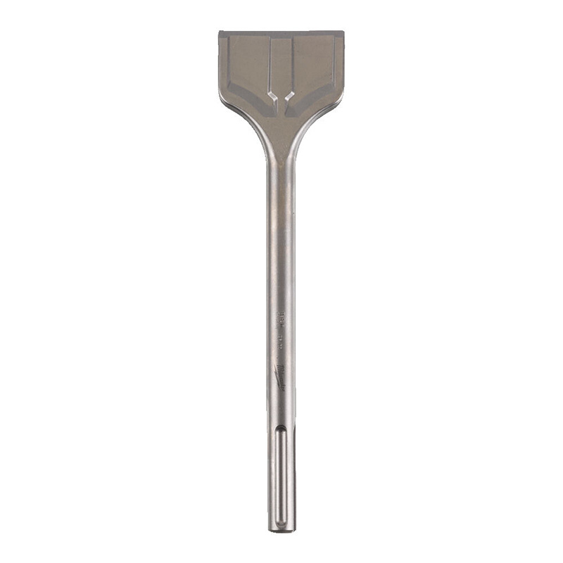 Le burin plat large SDS-Max 80x400 mm est conçu pour une démolition efficace et durable. Avec une tête auto-affûtante et une longueur extra longue, il offre un retrait de matière optimal et une durée de vie deux fois plus longue qu'un burin standard.