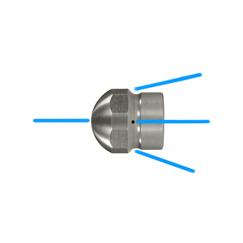 Cette buse de canalisation en inox est équipée de 3 jets arrière