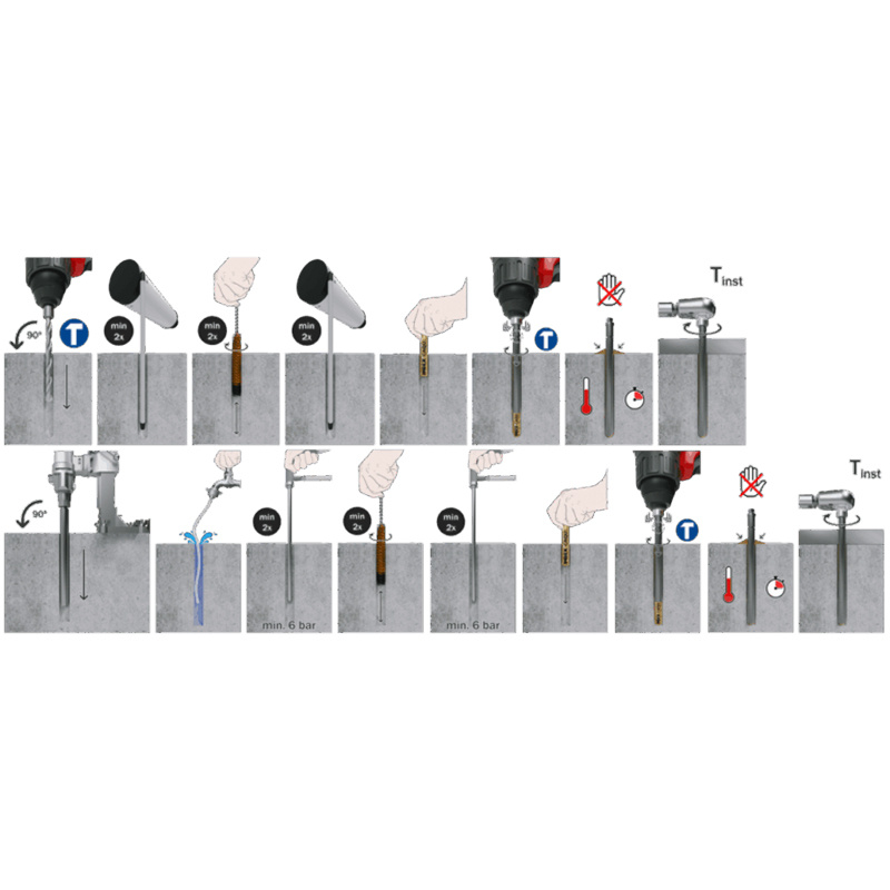 d’une résine époxy-acrylate, de granulats de quartz et d’un catalyseur, elle assure une fixation structurelle fiable dans le béton non fissuré.
