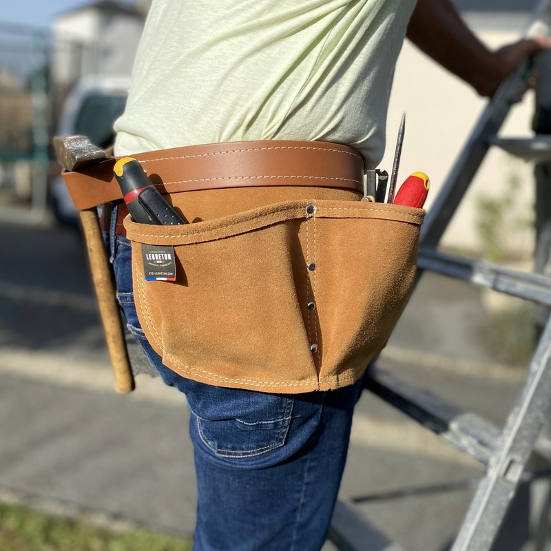 Conçue en croûte de cuir velours, cette ceinture porte-outils allie