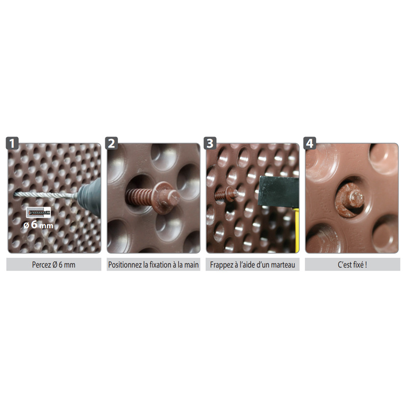 - Perçage Ø6 mm, nombre de fixations au m² : 3 à 4
