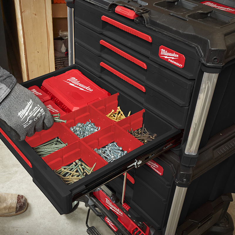 Le coffret 4 tiroirs PACKOUT™ offre une organisation optimale avec des séparateurs ajustables et une capacité de charge de 11 kg par tiroir. Conçu pour une durabilité maximale, il est fabriqué en polymère résistant aux chocs et dispose d’un verrouillage sécurisé. Compatible avec le système modulaire PACKOUT™ pour un rangement flexible.