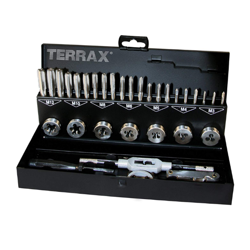 Coffret filetage/taraudage 31 pcs Ruko Terrax M3-M12 Pour filetages internes et externes sur aciers, fontes et métaux non ferreux Acier HSS-G haute performance pour durabilité et précision Coffret complet avec tarauds, filières, porte-filières et outils de montage