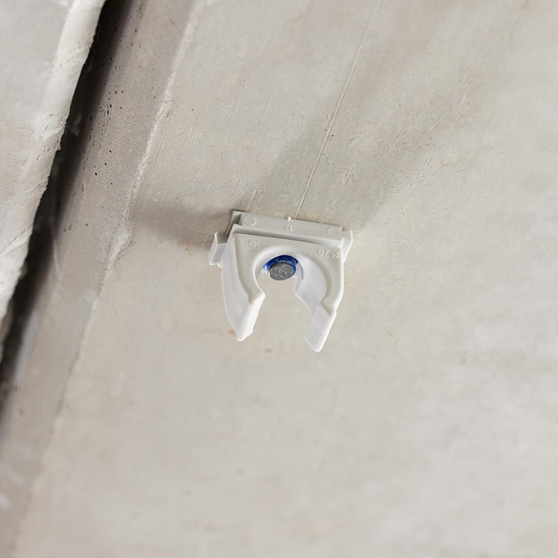 Le Collier Lyre SPIT E-Clip permet une fixation rapide et précise des tubes plastiques rigides grâce à ses ergots de centrage. Conçu pour une installation facile à une main, il est disponible pour divers diamètres. Idéal pour les nappes de tubes, il simplifie vos travaux de manière efficace.