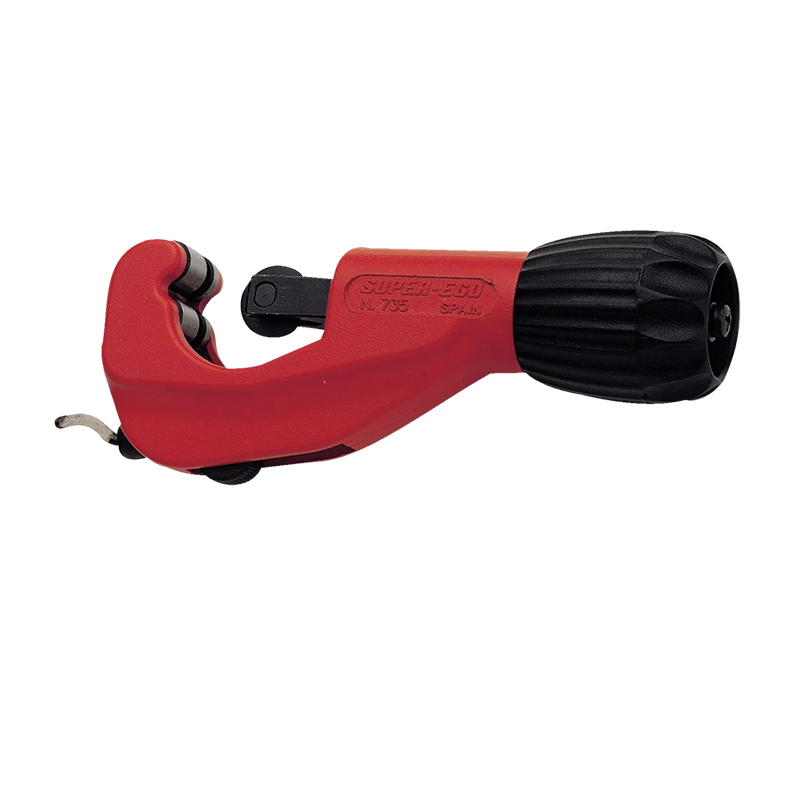 Coupe-tubes cuivre SEGO 735 Ø6-35 mm Pour plombiers et chauffagistes : coupes rapides et précises. Système télescopique avec escariateur intégré et lame de rechange. Rouleaux pour coupe près des embouts et manche ergonomique.
