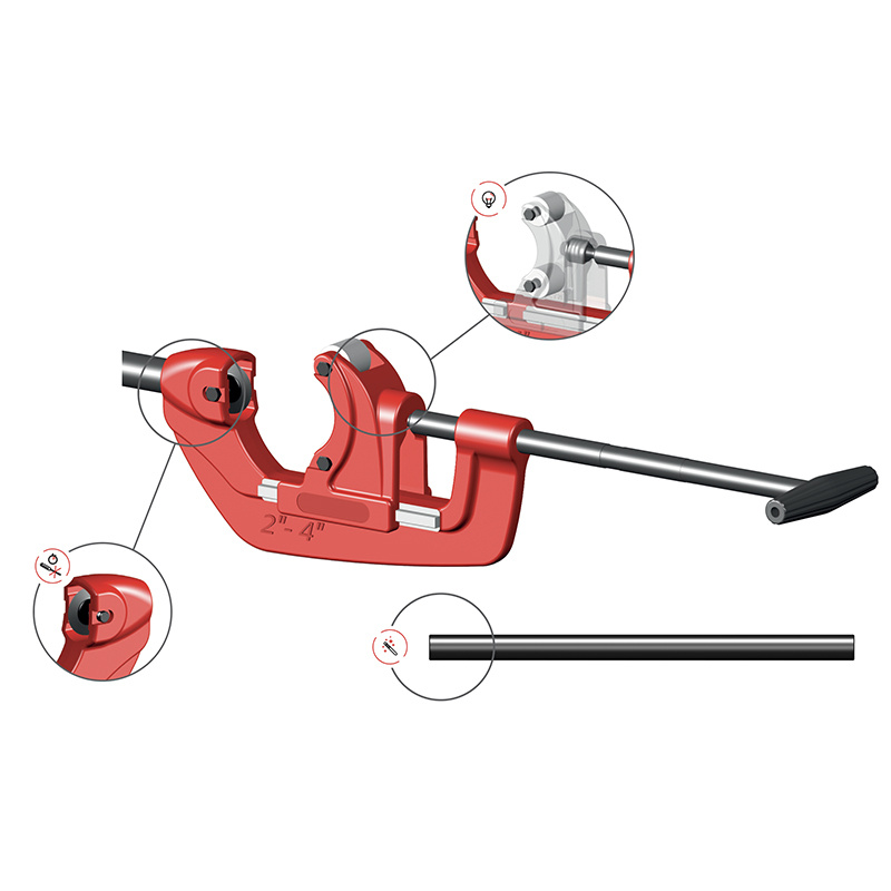 Coupe-tube acier/inox 4'' avec barre d’aide. Corps forgé ultra résistant. Coupe tubes jusqu’à 10 mm d’épaisseur. Changement de molette instantané sans outil (ICS). Barre auxiliaire intégrée pour un effort réduit.