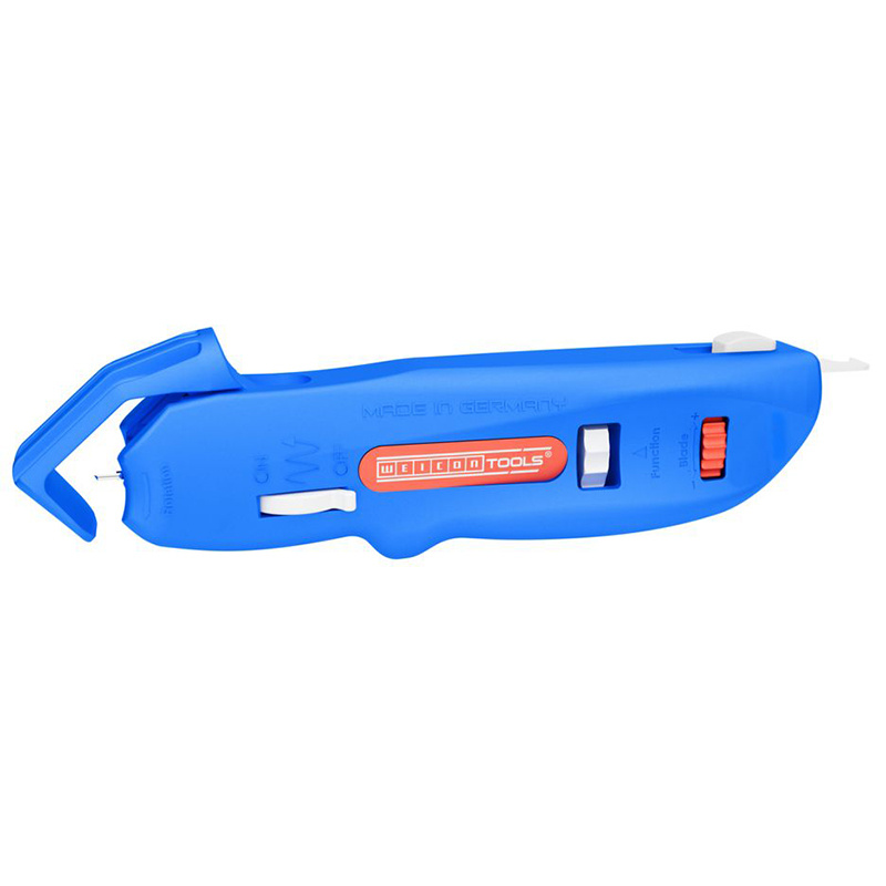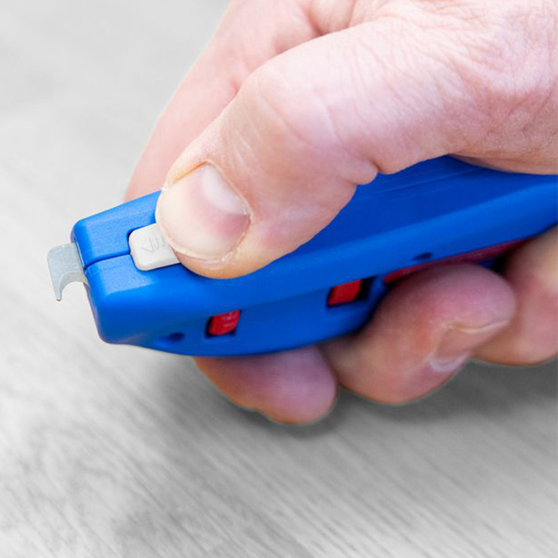 Sa lame rotative auto-rétractable assure une protection maximale de l’utilisateur : en cas de mauvaise manipulation, elle se rétracte instantanément pour éviter les blessures. Grâce à sa molette de réglage verrouillable, la profondeur de coupe s’ajuste avec une précision millimétrée (de 0 à 3 mm par paliers de 0,1 mm), ce qui permet de préserver l’intégrité des conducteurs internes, même en présence d'isolations épaisses ou délicates.