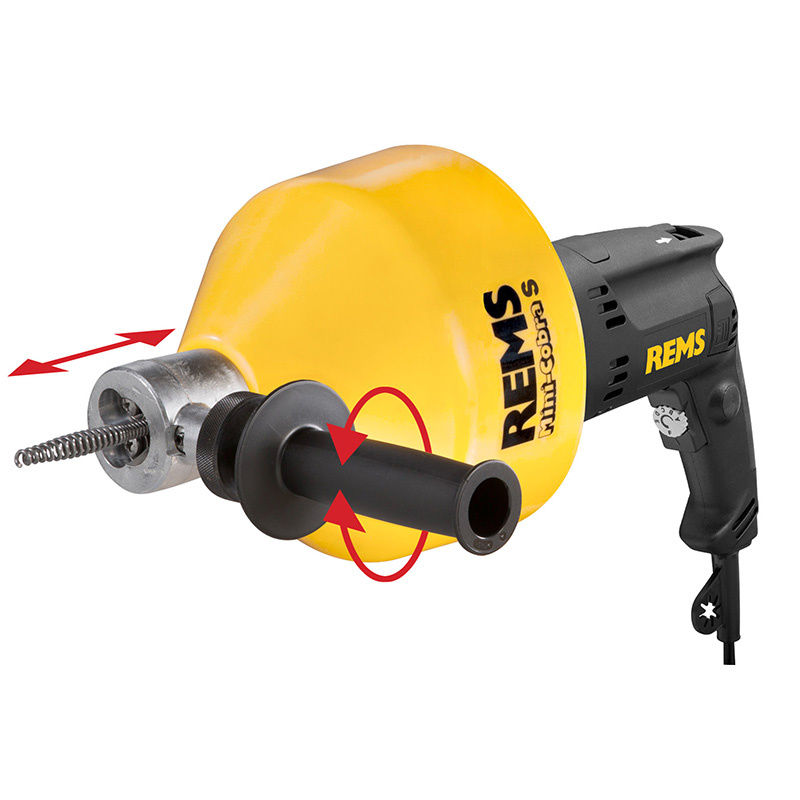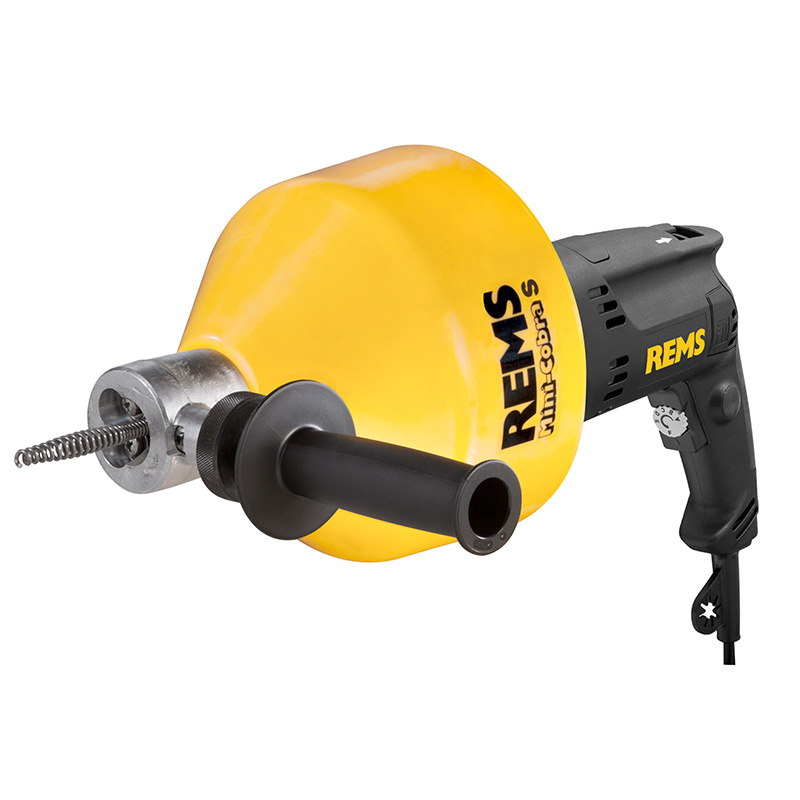 Déboucheur électrique REMS Mini Cobra S 600W, conçu pour déboucher rapidement les canalisations Ø 20–50 mm. Avec avance/retour automatique de la spirale, moteur puissant et variateur de vitesse pour une performance optimale. Compact, léger et livré avec spirale Ø 8 mm x 7,5 m.