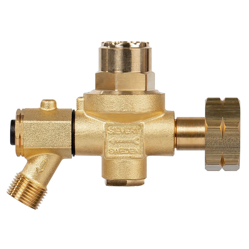 Détendeur laiton à pression fixe 4 bars avec valve de sécurité anti-rupture (HFV). Raccord tuyau 3/8" LH et connexion bouteille type SHELL. Débit max : 12 kg/h. Robuste et sécurisé, idéal propane haute pression.