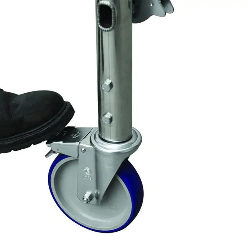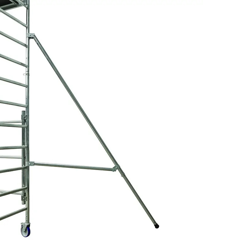 Les 4 roues pivotantes avec freins assurent un déplacement fluide et sécurisé sur le chantier, tandis que les étayages réglables et rabattables garantissent une stabilité optimale sur différentes surfaces. Le plancher bois équipé de plinthes offre une plateforme de travail sûre et confortable pour des tâches telles que la peinture, la pose d’équipements ou la maintenance.