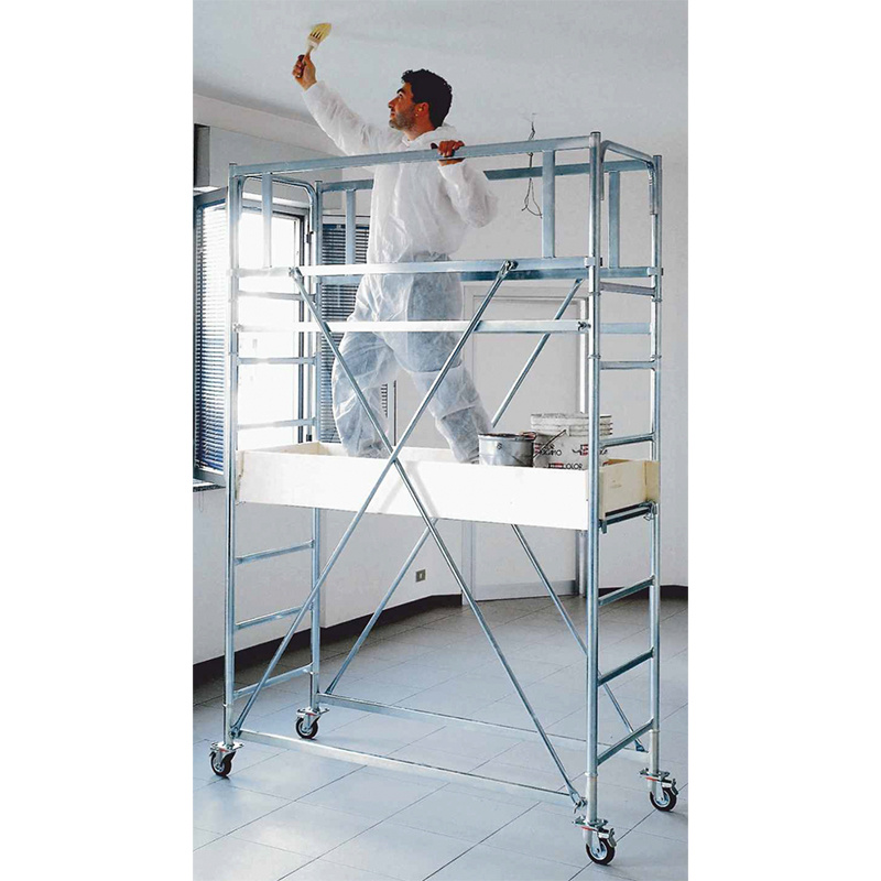 Conçu pour une utilisation intérieure, cet échafaudage roulant est