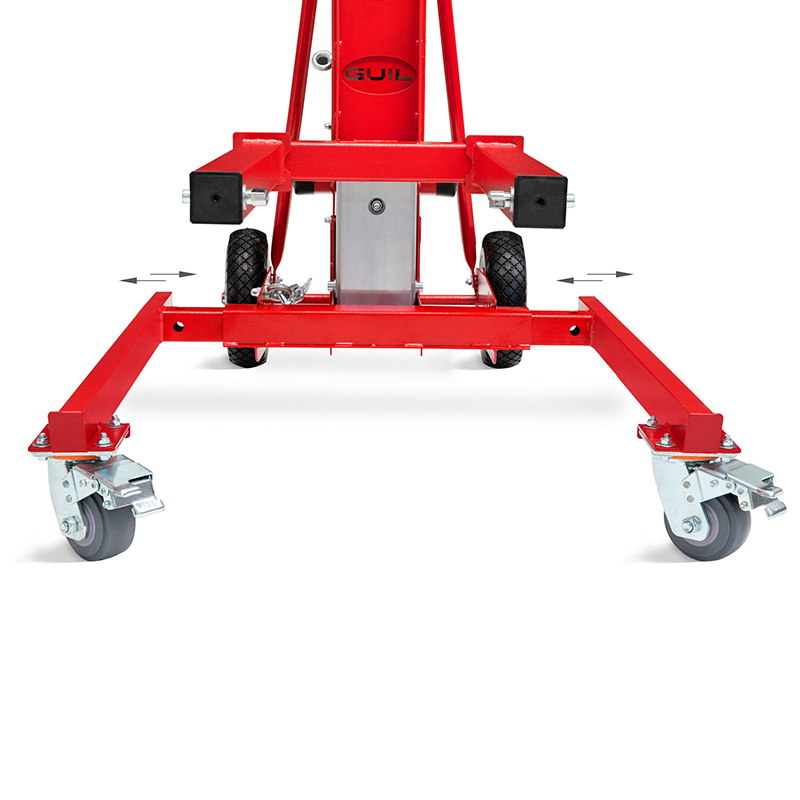 réversibles, jambes stabilisatrices avec niveleurs, treuil automatique à double