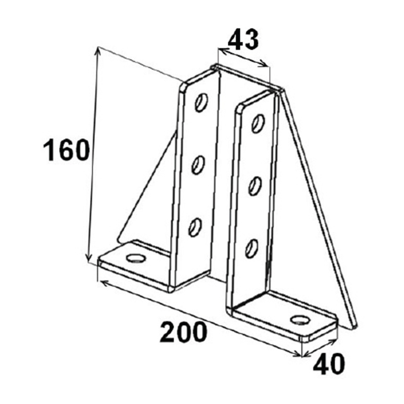Embase renforcée ZGA PER 41x41 Fixation transversale robuste, acier zingué. Usage intérieur/extérieur. Livrée sans écrous rail.
