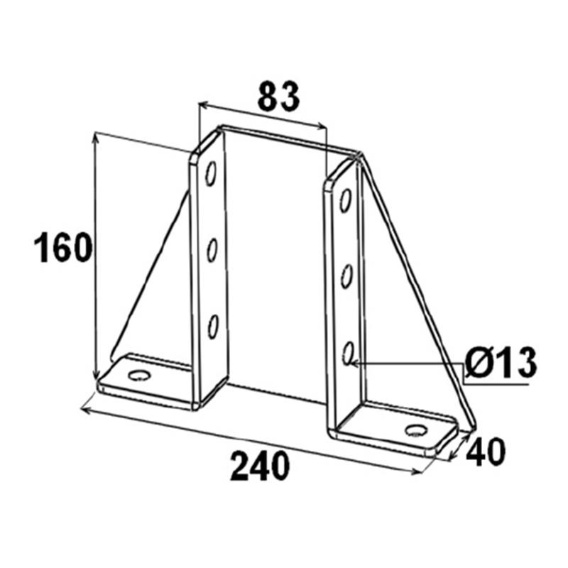 Embase renforcée ZGA PER 41x82 Fixation transversale pour profil double, acier zingué. Robuste, usage intérieur/extérieur. Livrée sans écrous rail.
