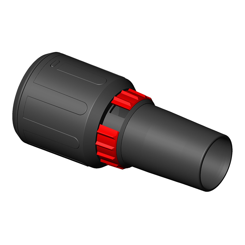 Connexion tube EL avec anneau d'air secondaire pour ajustement infini de la force d'aspiration. Rotatif, incassable et électriquement conducteur, pour tuyaux Ø35mm. Idéal pour travaux délicats comme le ponçage.