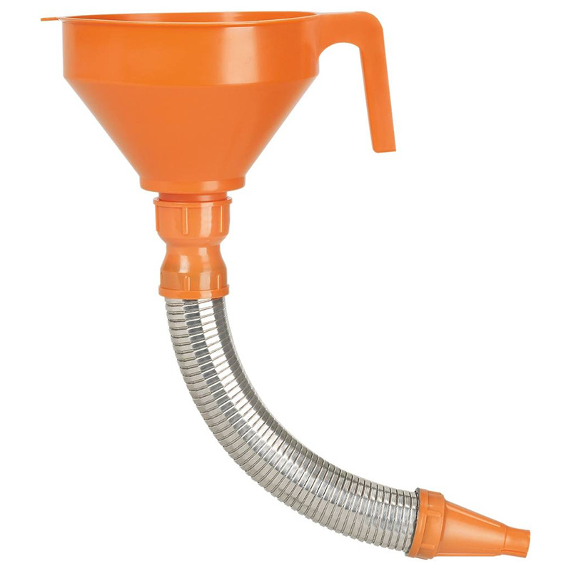 L'entonnoir flexible métal Ø160 mm avec filtre interchangeable en laiton assure un remplissage propre et rapide. Son flexible métallique amovible de 300 mm facilite l'utilisation et la précision. Idéal pour les transferts de liquides avec filtration optimale.