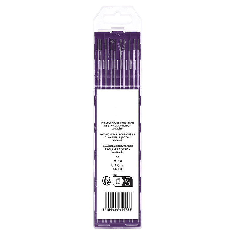 Les électrodes tungstène E3 à extrémité lilas sont composées d’oxyde de