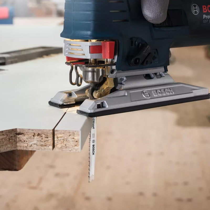 Lames de scie sauteuse T101 D de 74 mm pour des découpes nettes et précises dans le bois tendre et les matériaux de menuiserie (10 à 45 mm). Fabriquées en acier haute teneur en carbone, elles offrent une coupe rapide grâce à leur denture affûtée et leur pas progressif. Compatibles avec toutes les scies sauteuses à emmanchement en T.