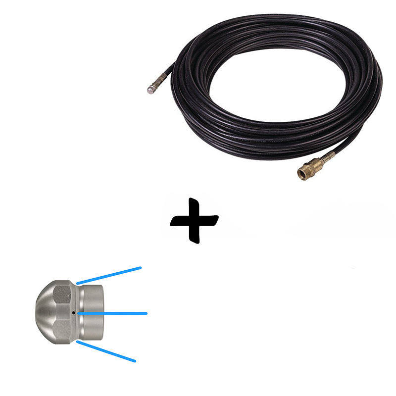 Flexible déboucheur haute pression 25 m Kit complet avec flexible 20 m et buse 3 jets. Débouchage rapide et efficace des canalisations.