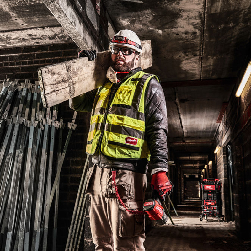 Le gilet haute visibilité jaune L/XL MILWAUKEE® offre 15 poches, dont une porte-badge et une grande poche arrière pour tablette. Il assure confort et sécurité avec un col rembourré, un cordon de serrage ajustable et une attache harnais. Certification EN ISO 20471: 2013/A1:2016.