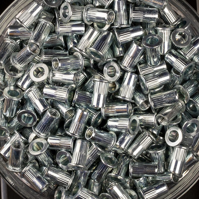 L'insert cranté tête plate AZ assure une fixation solide et résistante aux vibrations. Fabriqué en acier zingué par frappe à froid, il garantit une installation facile sans rupture de fibre et une excellente tenue à l'arrachement. Idéal pour 80% des assemblages par écrous.