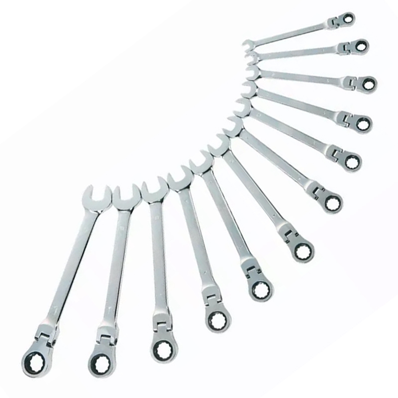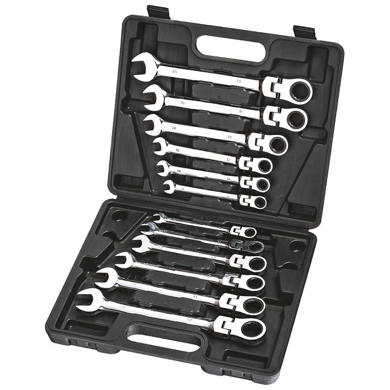 jeu de 12 clés mixtes à cliquet avec têtes inclinables à 180° offre une