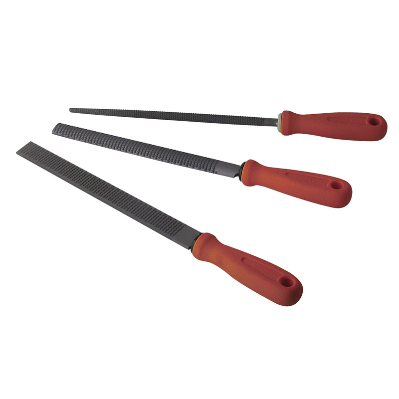 Jeu de 3 râpes moyennes GETEC Inclut râpe plate, ronde et mi-ronde pour finitions précises. Pour bois, plâtre, matériaux tendres. Disponible en 200 mm ou 250 mm.