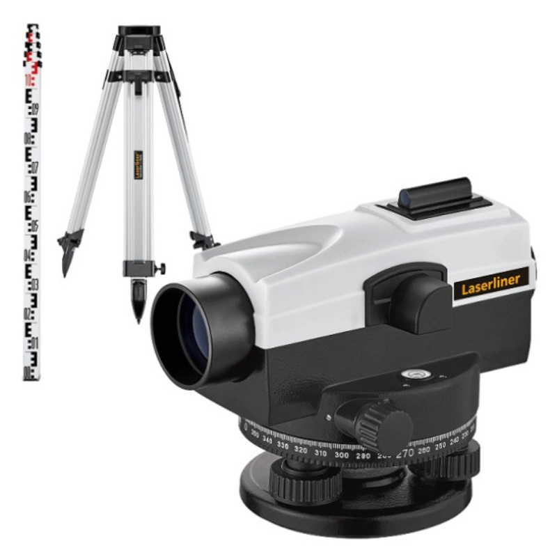 comprend un niveau optique précis, un trépied en aluminium robuste et une mire
