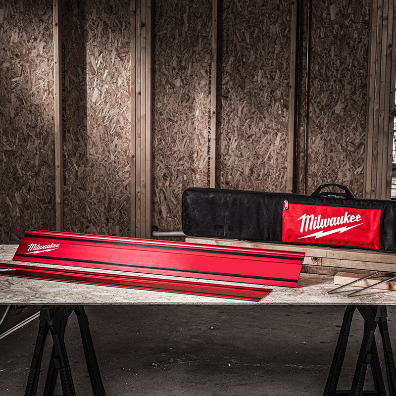 Kit pour scie plongeante Milwaukee avec 2 rails de 1400 mm, pièces de raccordement et sac, compatible M18 FPS55, M18 FCSG66 et M18 FMCS.