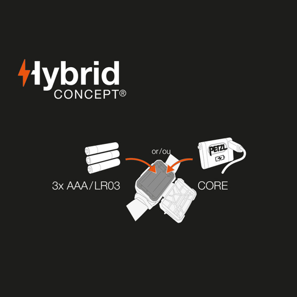 fonctionne avec 3 piles AAA/LR03 (incluses) ou batterie rechargeable CORE