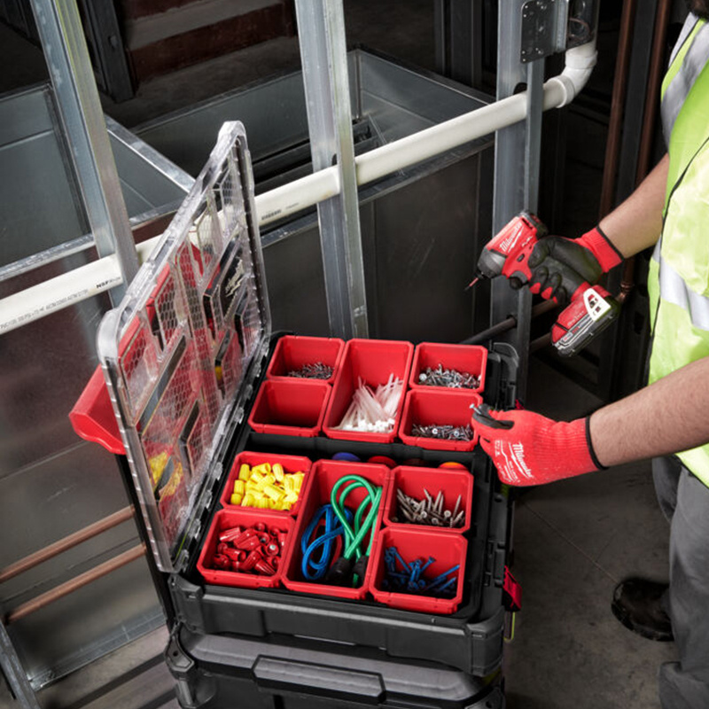 Le Lot de 2 Bacs PVC PACKOUT™ Milwaukee® permet un rangement pratique pour petits accessoires comme tournevis et bandes. Livré avec diviseurs amovibles et compatible avec le système PACKOUT™. Conçu en polymère résistant aux chocs pour une durabilité optimale.