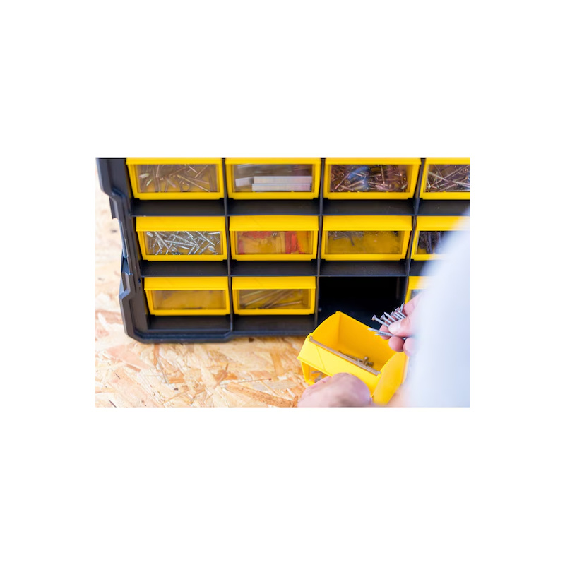 transport de vos petites pièces avec la mallette STANLEY FlipBin 12 Cases,