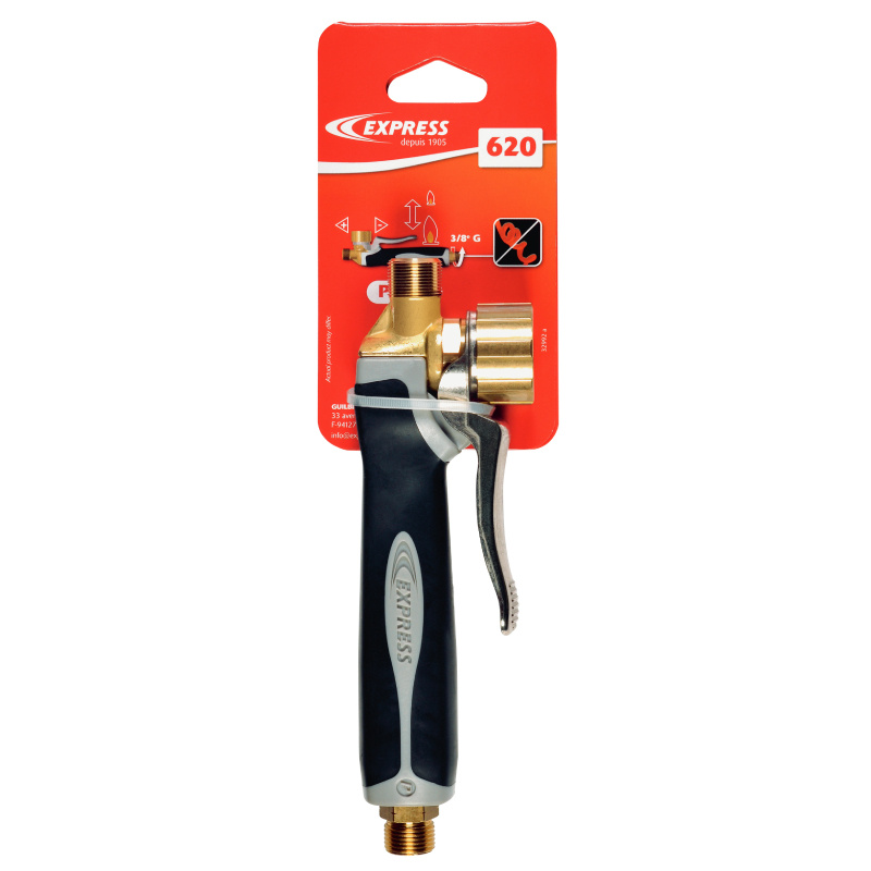 Manche à gâchette « bimatière » avec raccord tournant 3/8e gauche, conçu pour chalumeaux d’étanchéité et fers de couvreur Guilbert Express.