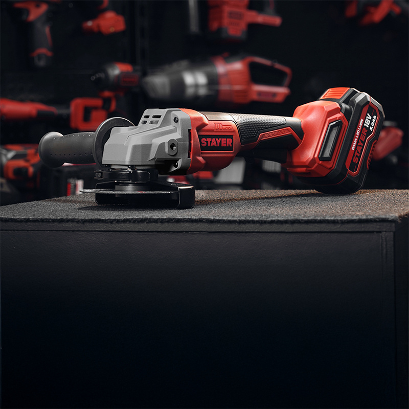 Meuleuse Ø125 Stayer AGB PS L20 – 18V Brushless Compacte et puissante, idéale pour les pros du bâtiment. Sécurité renforcée : arrêt rapide du disque + embrayage anti-blocage. 1,7 kg seulement – moteur Brushless – 8500 tr/min.