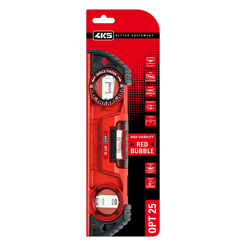 La fiole d’inclinaison rotative, avec des repères tous les 5°, facilite la mesure rapide des angles. La rainure en V et les puissants aimants en terre rare permettent d’aligner facilement les conduites et chemins de câbles. Son boîtier conique en aluminium ultrarésistant, associé à des embouts antichocs, garantit une grande robustesse et une durabilité exceptionnelle sur chantier.