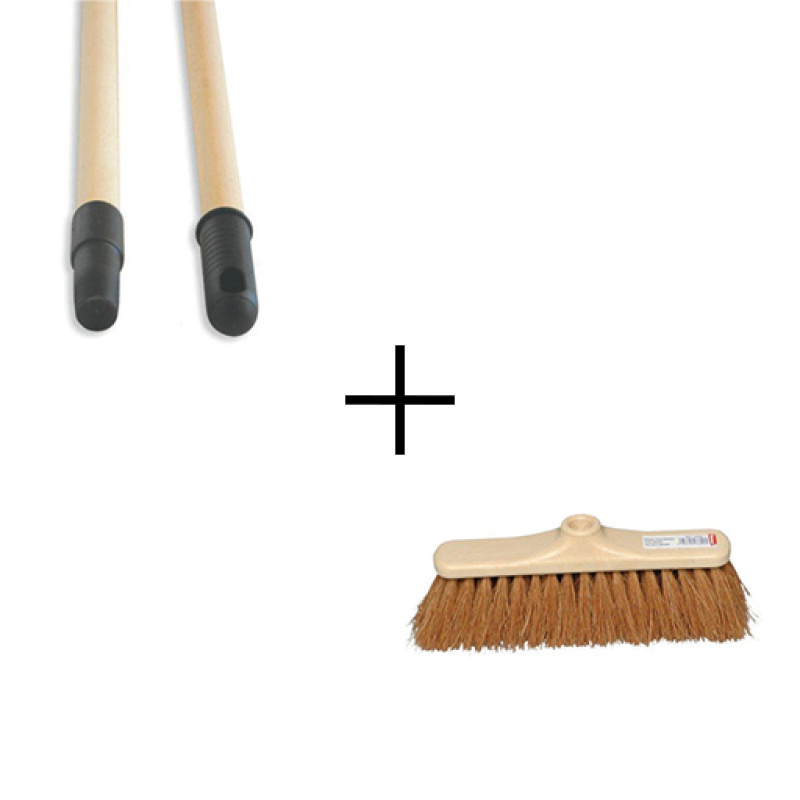 Pack balai Coco 300 mm + manche 1300 mm à embout vis Fibres coco résistantes, montage rapide. Idéal sols intérieurs et extérieurs protégés.