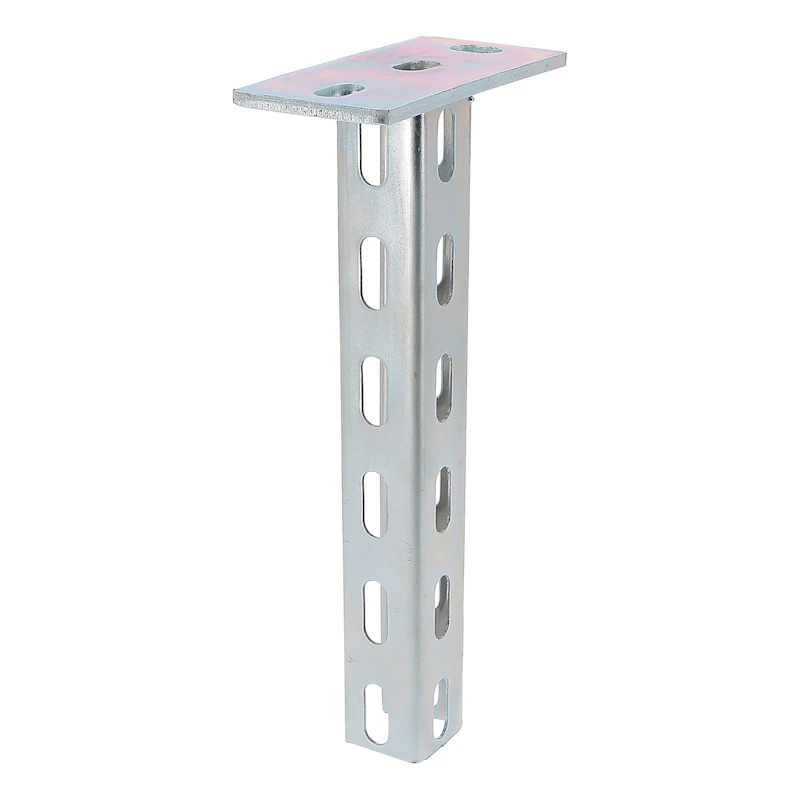 Pendard 41x41 3 faces perforées Accessoire de fixation au plafond, idéal pour consoles encliquetables. Perforation 13x30 mm, embases 140x70 mm. Disponible en plusieurs longueurs et en revêtement électrozingué.