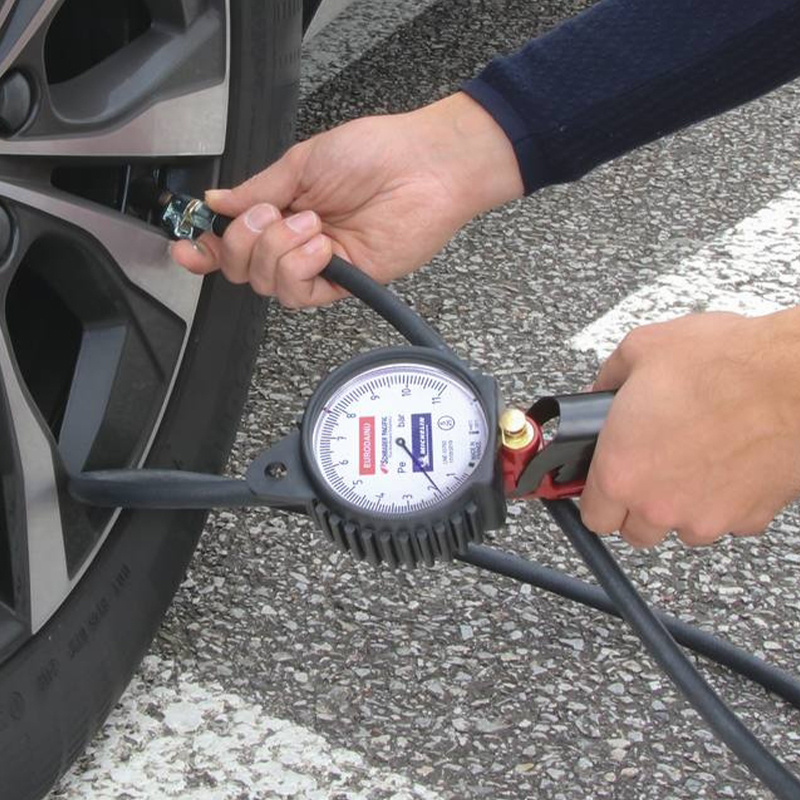 Le pistolet de gonflage Schrader 11 bars est conçu pour moto, VL et PL, avec un manomètre de 80 mm pour un contrôle précis. Il dispose d'un tuyau de 1,5 m et d'un raccord 1/4 femelle. Idéal pour des gonflages fiables et homogènes.