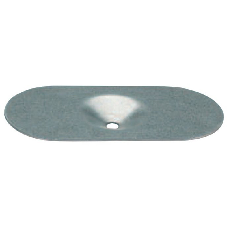 Plaquette lisse en acier galvanisé Z275, épaisseur 1 mm. Idéale pour le maintien d’isolants et membranes d’étanchéité. Format 82 x 40 mm avec cuvette autour du trou pour une fixation sécurisée.