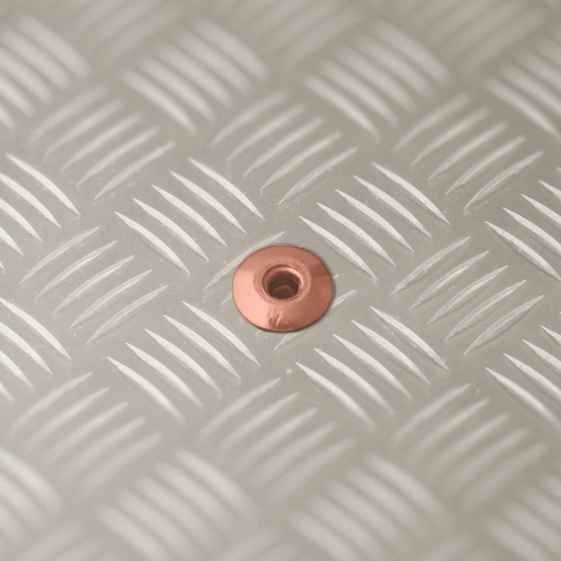 Le rivet standard cuivre/acier offre une fixation solide et durable avec une excellente conductivité. Sa tête plate assure un sertissage optimal, idéal pour les assemblages métalliques. Disponible en différents diamètres et longueurs.