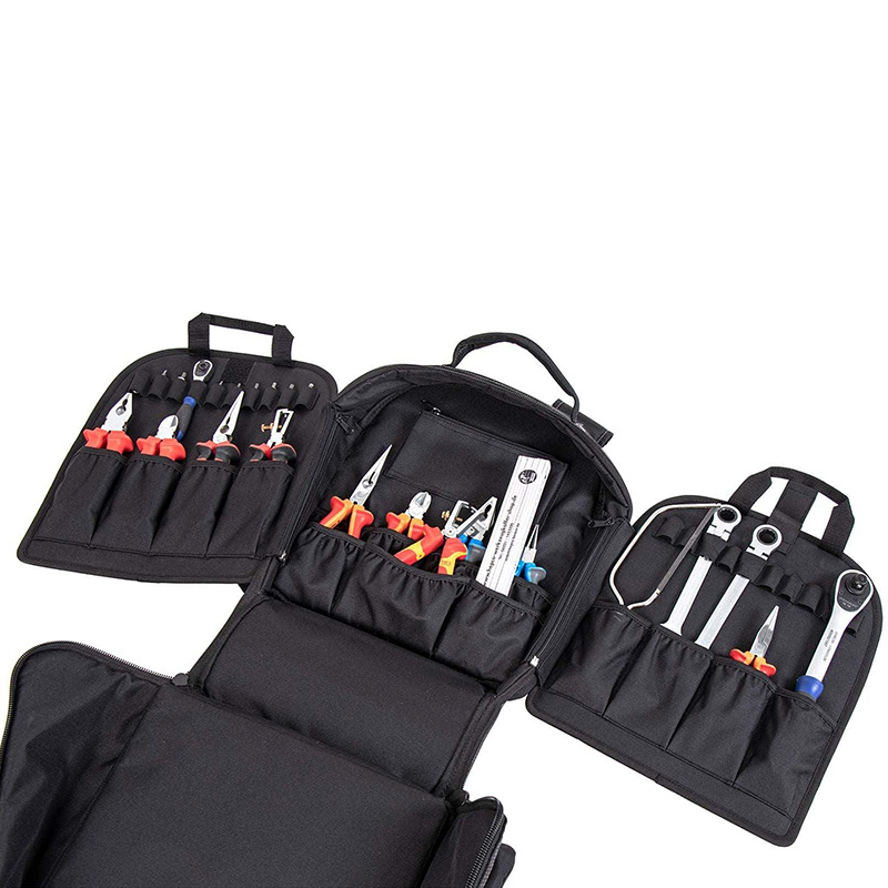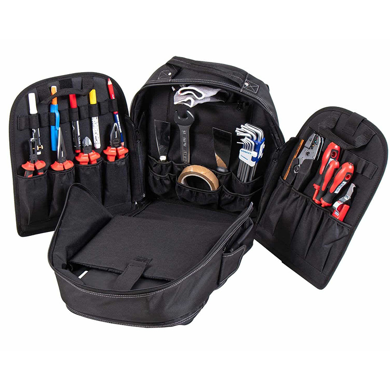 Sac à dos à outils TOOL TOP 07 – 420 x 350 x 210 mm Nylon 1680D résistant et déperlant. Accès frontal complet, panneaux outils dépliables. Sangles confort + compartiment PC. Charge jusqu’à 15 kg.