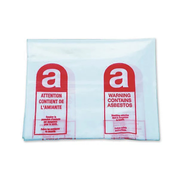 Sac PE déchets amiante – 700 x 1100 mm – 80 microns Sac transparent haute résistance avec marquage réglementaire « Amiante – Danger ». Idéal pour gravats, EPI, et matériaux contaminés. Épaisseur 80 µ – Conforme réglementation déchets amiantés.