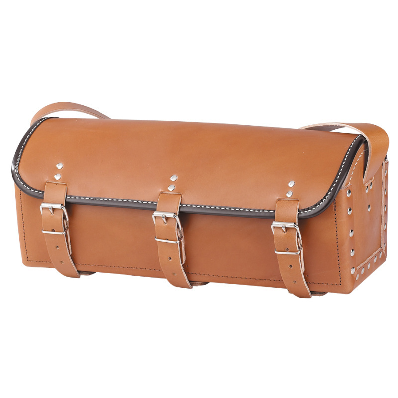 Sacoche cuir plombier 500x160x160 mm Cuir vachette pleine fleur, fond renforcé. Courroie de portage, fermeture 3 sangles boucles. Poche intérieure, montage cousu.
