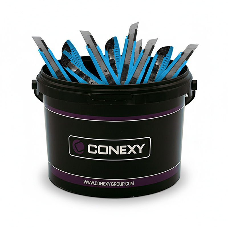 Seau Cutter LC500 – 12 cutters ergonomiques, 2 offerts. Blocage automatique et magasin 2 lames. Livré avec seau et couvercle pour rangement facile.