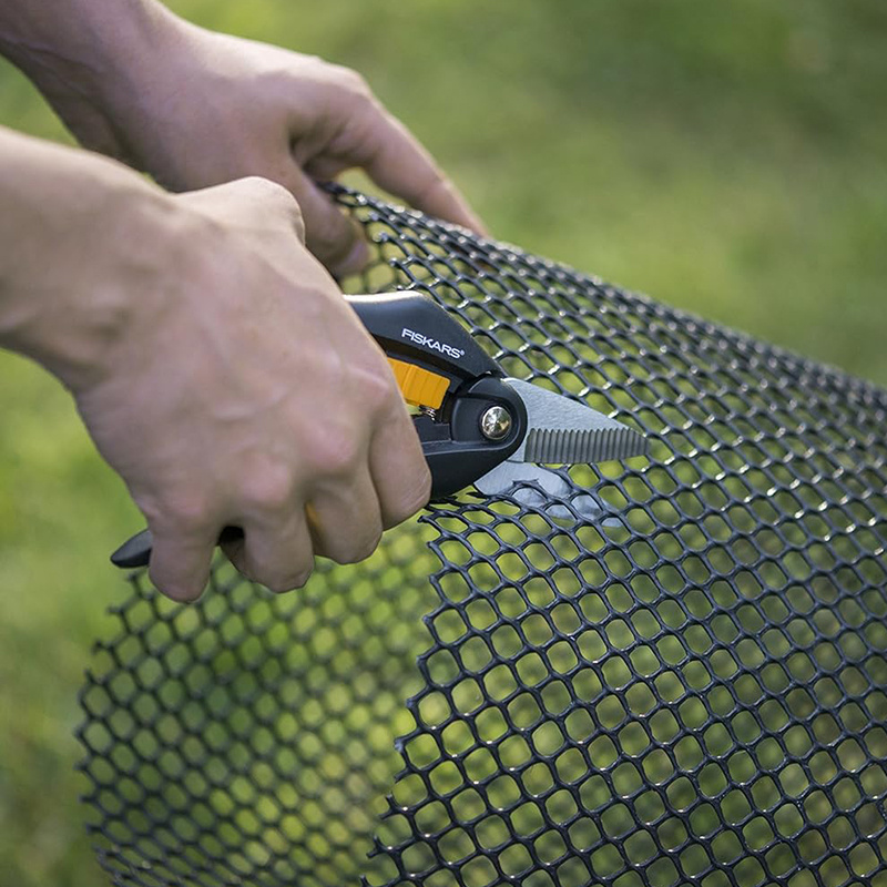 Sécateur coupe-tout universel Fiskars Découpe précise des plastiques, tôles fines et tuyaux. Lame striée pour un bon maintien des matériaux. Poignées robustes, confortables et bonne prise en main.