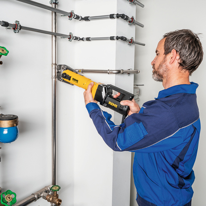 La sertisseuse électrique REMS Power Press SE 450W est compacte, robuste et idéale pour les chantiers. Elle permet un sertissage rapide et sûr, de Ø10 à Ø108 mm, avec verrouillage automatique de la pince. Livrée dans un coffret métallique pour un transport facile.