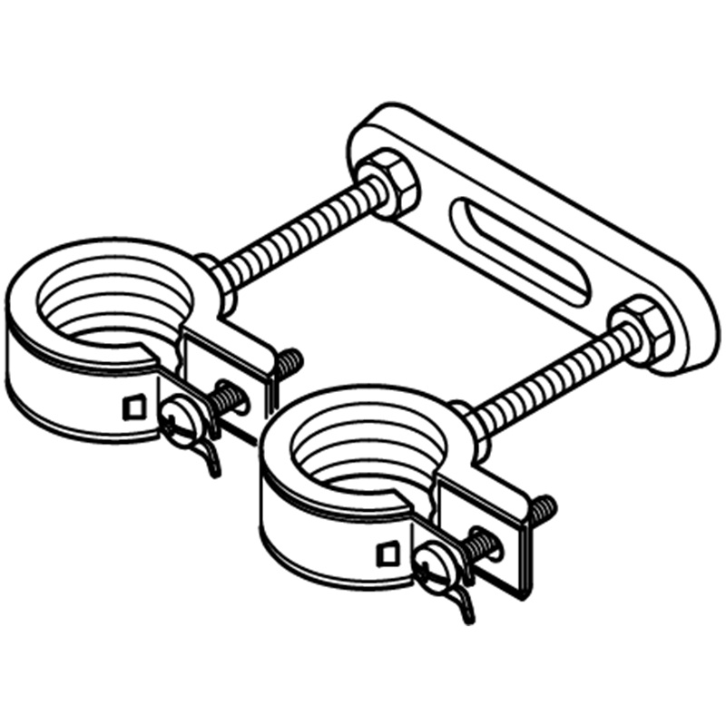 Support Double DH – Permet la fixation de deux tuyauteries en parallèle avec un seul point d'ancrage. Son filetage M8 et son trou oblong assurent un alignement précis et un réglage facile. Fabriqué en acier galvanisé, il est disponible en plusieurs longueurs.