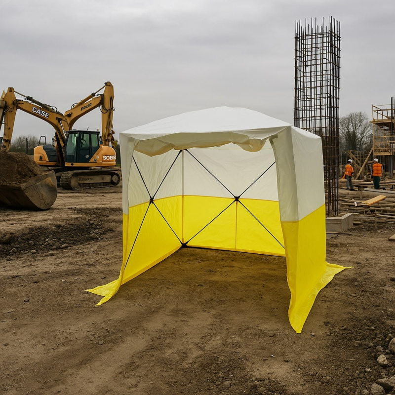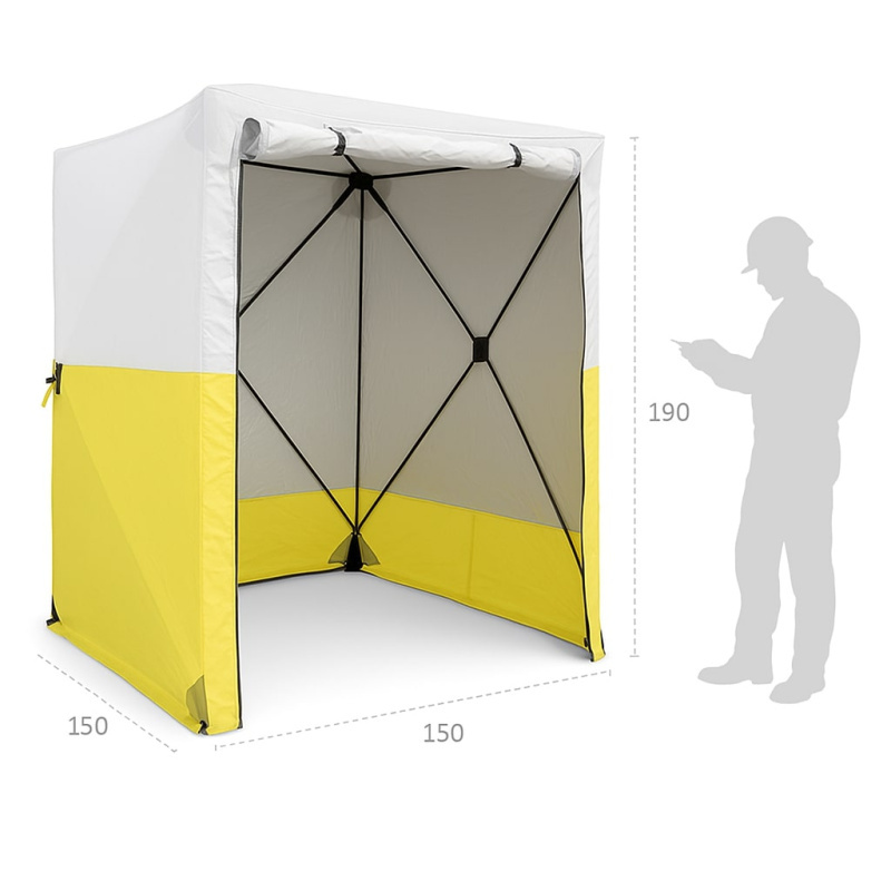Avec des dimensions de 150 x 150 x 190 cm, cette tente offre suffisamment d’espace pour que les techniciens puissent se tenir debout à l’intérieur, ainsi que pour protéger leurs outils et installations. Fabriquée dans des matériaux ultra résistants, elle garantit une longue durée de vie même en usage intensif sur les chantiers.