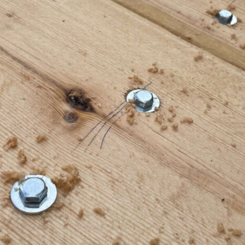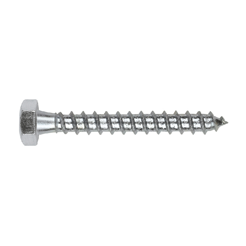 Tirefond en acier zingué avec tête hexagonale et filetage total, conforme à la norme DIN 571. Conçu pour des fixations robustes dans le bois, il assure une résistance élevée aux charges.